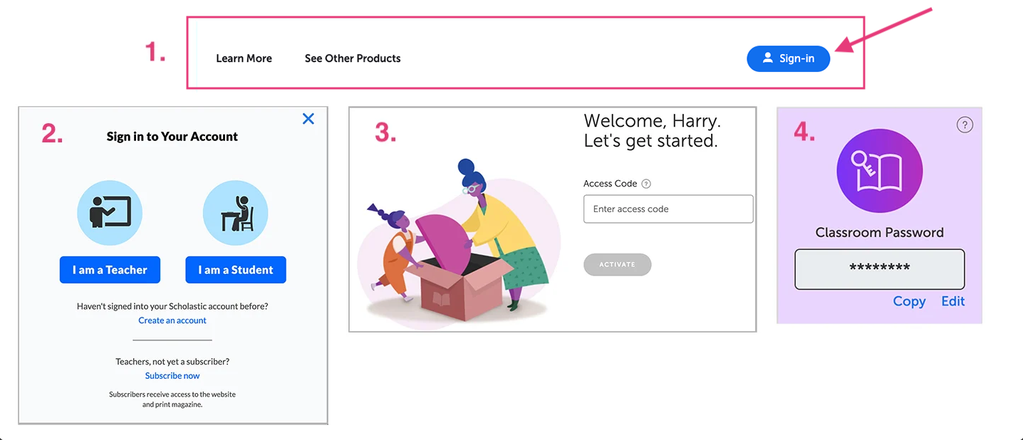 It’s all in the Send-Home Letter, which comes in Spanish and English. They simply enter the URL scholastic.com/sn1, and then click Log in.